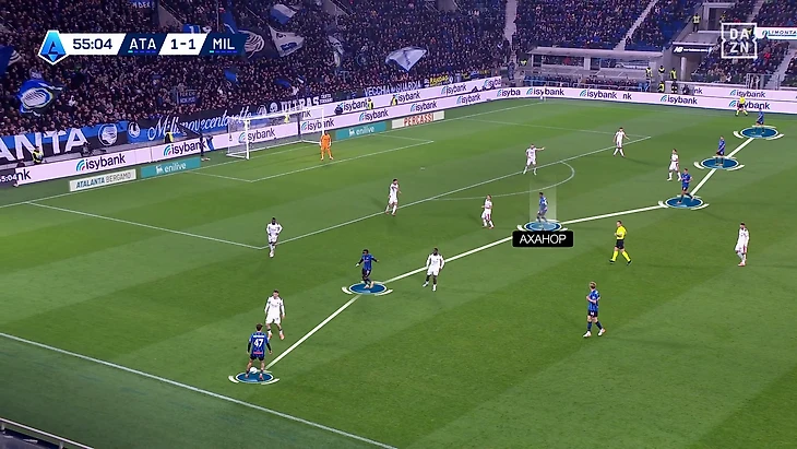 Аханор нанес два удара из штрафной с игры и, возможно, был самым острым футболистом «Аталанты». Разумеется, каждое его подключение доводить до удара не получалось. Замысел правильнее оценивать по частоте эпизодов, когда он осмысленно подключается и оказывается самым высоко расположенным игроком в структуре «Аталанты». Их правда было очень много.
