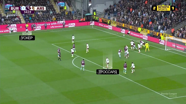 ● «Арсенал» наказал «Бернли» сразу после длинного аута у своих ворот в контратаке. На моей памяти – первый случай в сезоне. Наказание – выбор человека, который вбрасывает аут. Играющий правого защитника Уокер пошел на левый фланг и в итоге не успел в свою зону. Возможно, просто устал бегать туда-сюда, потому что реально еле полз назад. «Бернли» толком не адаптировался. Троссард, по которому Уокер играл весь матч, остался свободен и зарешал.