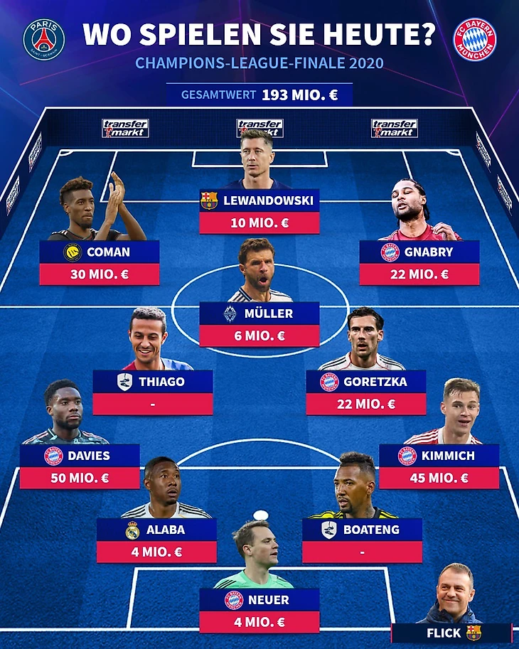 Из стартового состава чемпионской команды Флика на финал ЛЧ-2020 в Мюнхене остались сразу пятеро: Серж Гнабри, Леон Горетцка, Йозуа Киммих, Альфонсо Дэвис и вечный Мануэль Нойер. Сам Ханс-Дитер перебрался работать в «Барселону», в помощники взял экс-подопечного из «Баварии» – Тиаго Алькантару. В столице Каталонии теперь и Роберт Левандовски.