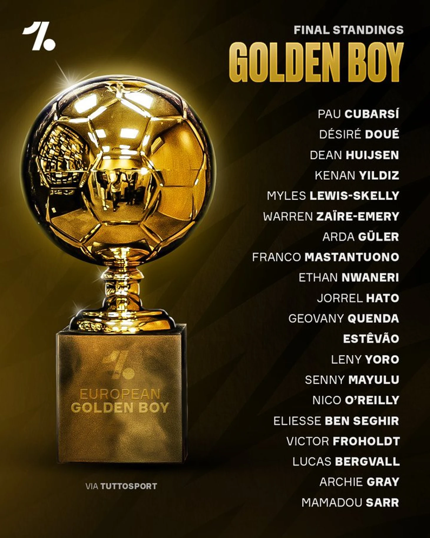 Дуэ – первый француз, выигравший приз с 2017-го (тогда награду получил Килиан Мбаппе). В прошлом году премию выиграл вингер «Барселоны» Ламин Ямаль.