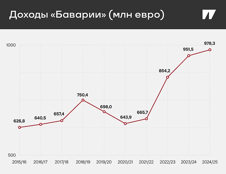 Общие доходы в 978,3 млн евро – это на 26,8 млн больше, чем год назад, когда тоже поставили рекорд. Мюнхенский суперклуб прибавил почти по всем основным финансовым направлениям: от спонсоров до матчдэй и мерча.