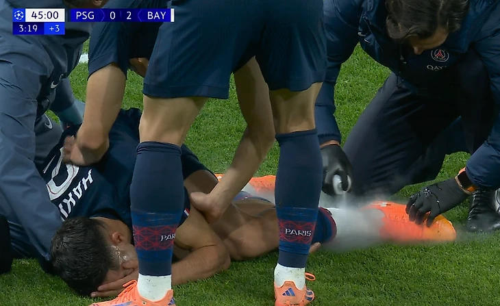 Дольше всего матч «ПСЖ» с «Баварией» мы, вероятно, будем вспоминать из-за этого пугающего эпизода. Ашраф Хакими, похоже, получил серьезную травму – из-за Луиса Диаса.