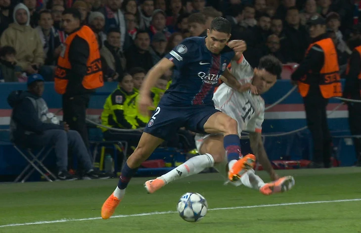 Мариани тут же дал желтую Диасу, а Хакими мучился от боли в левой ноге. Но на повторе все гораздо страшнее.