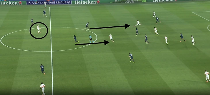 Именно Невешу зачастую шли фланговые доставки. Пока Рамуш стягивал внимание, Невеш атаковал. Именно он забил единственный мяч «ПСЖ», замкнув на дальней подачу Ли (Лаймер выключился, Рамуш отвлек Упамекано). Еще Невеш опасно бил головой с подачи Ли, отскочив от Та. Несмотря на низкие 174 см роста, Невеш регулярно забивает после навесов. Правда, обычно на стандартах, где теряется вдали от эпицентра событий, а затем открывается у дальней штанги. «Баварии» тоже забил в подобном стиле, но не на стандарте.