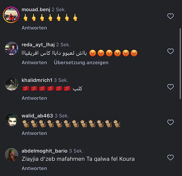 Конечно, травма Хакими стала одной из основных тем послематчевых обсуждений. Поклонники Ашрафа заполнили соцсети Диаса – комментарии грубые и даже расистские. Общий посыл ясен по одним только эмодзи.