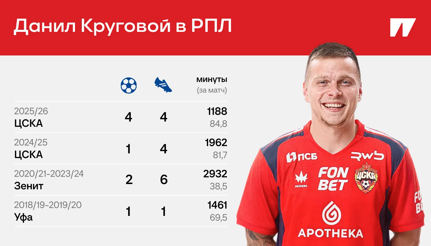 Данил Круговой еще никогда не был настолько эффективным и востребованным в РПЛ: