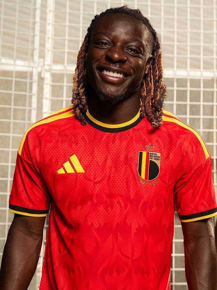 Бельгийский триколор отыгран на воротнике и рукавах, а на самой футболке повторяется узор трезубца и языков пламени. Отсылка к прозвищам «Красные дьяволы» и «Красное пламя».