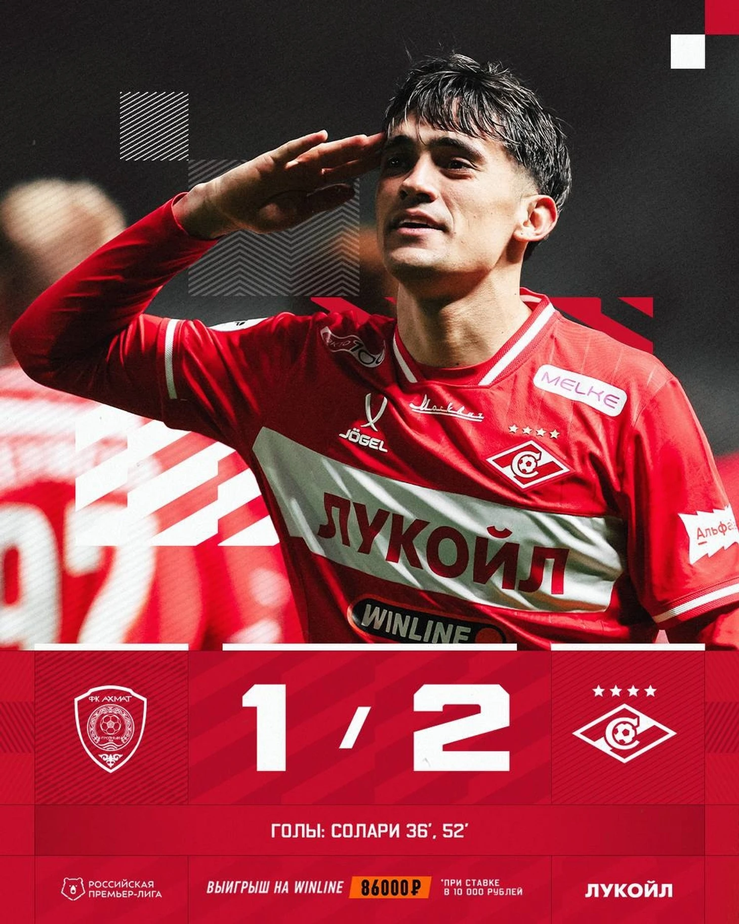 Красно-белые завершили первый круг МИР РПЛ важной гостевой победой над «Ахматом» Станислава Черчесова.
