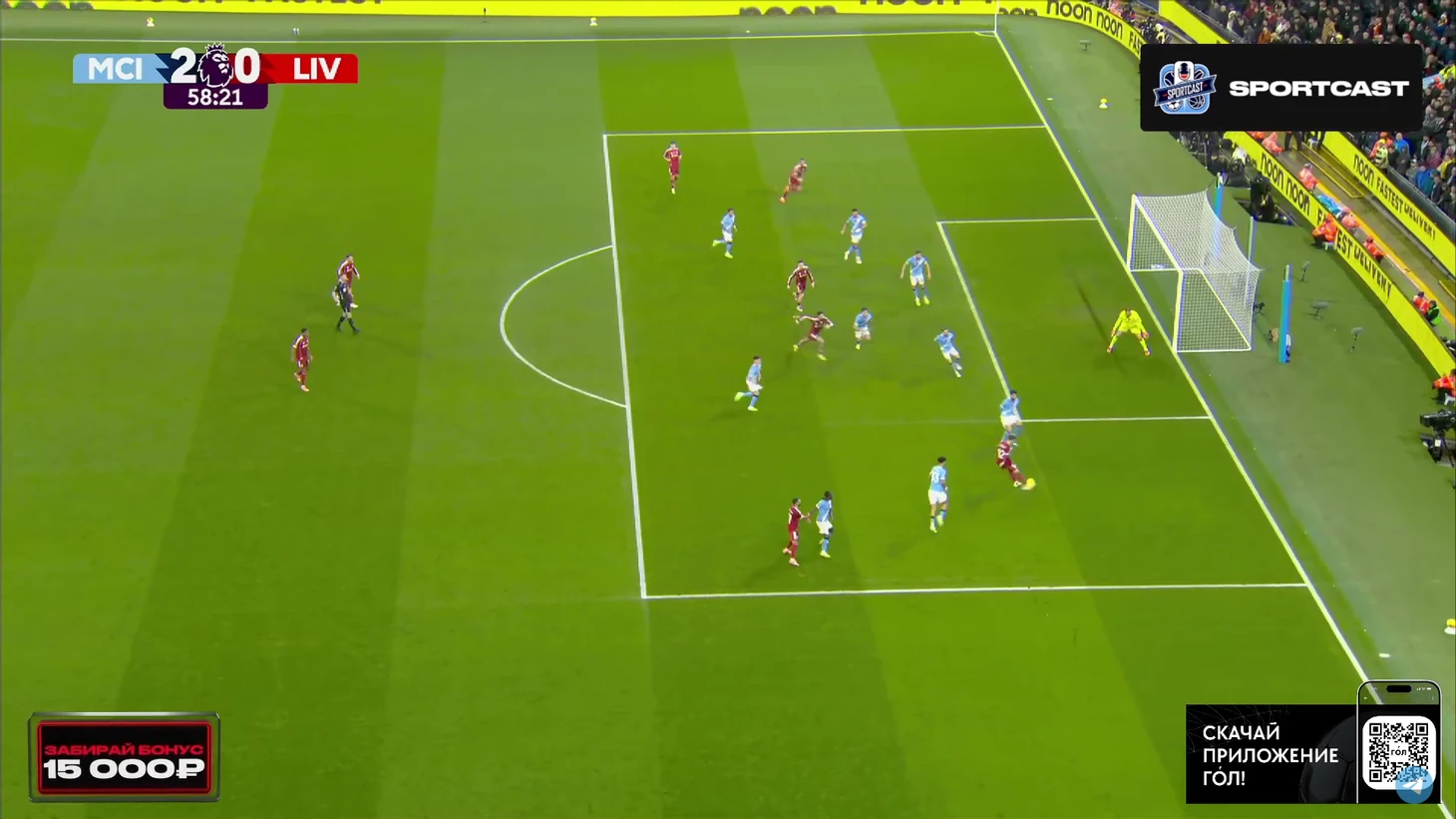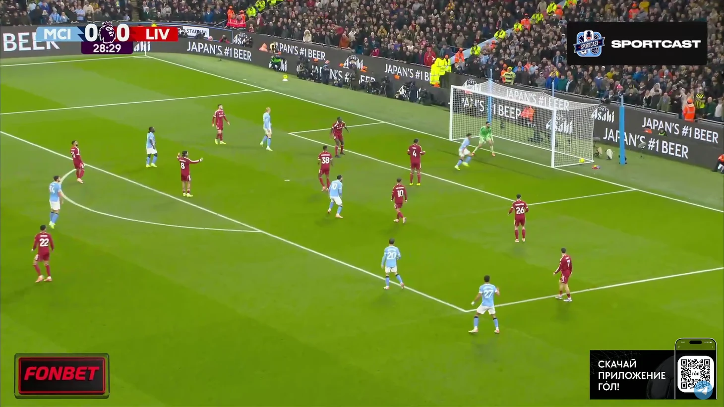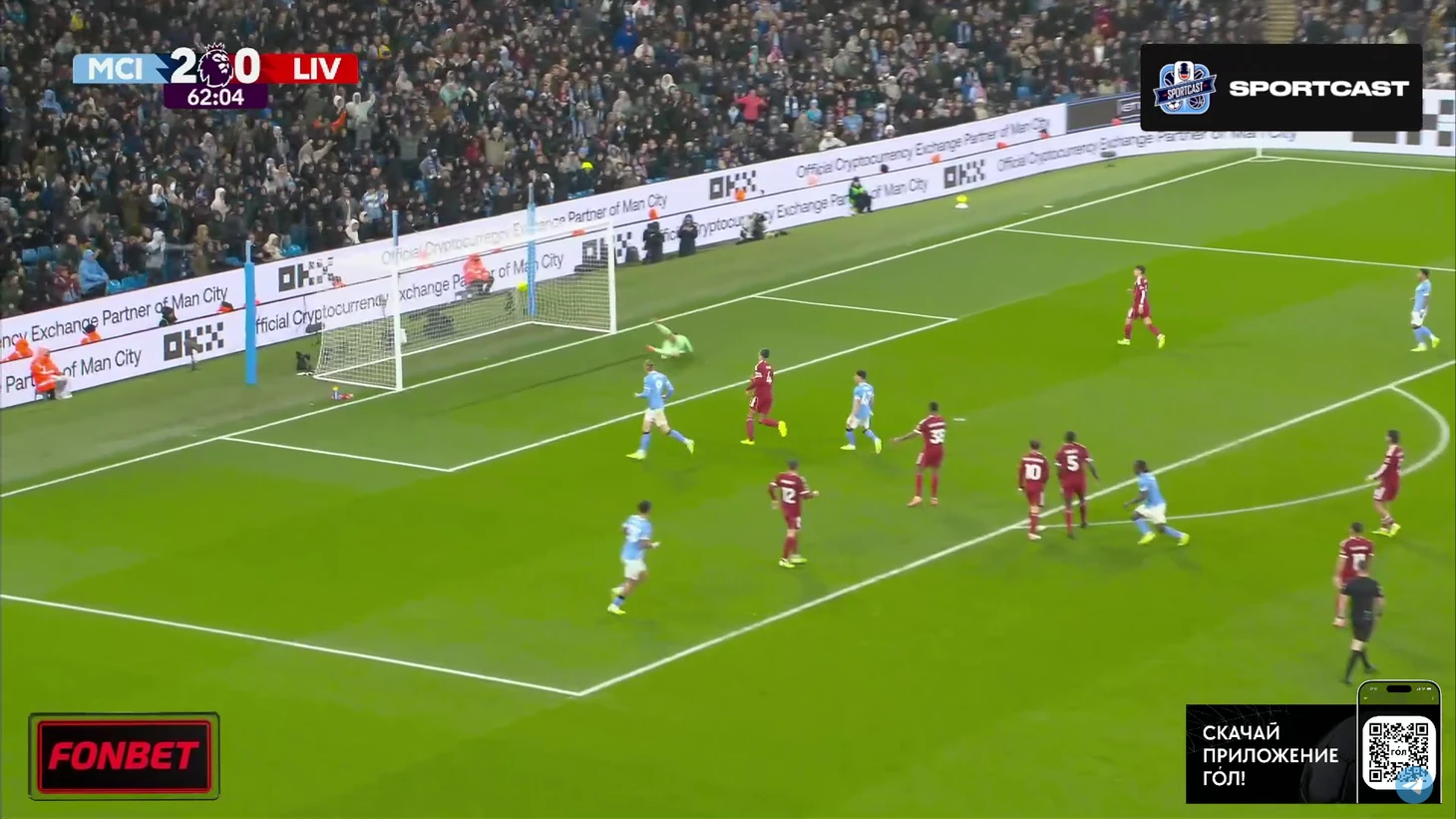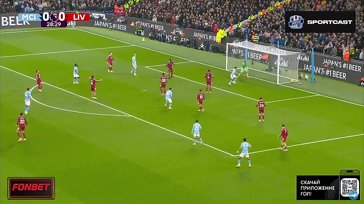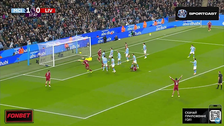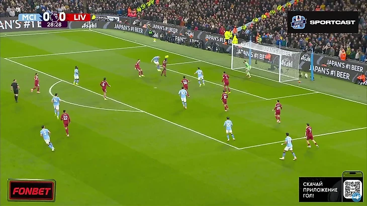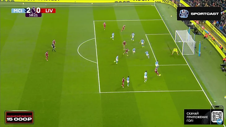 Впрочем, на настроение «горожан» это никак не повлияло. Они продолжили идти вперёд, преимущественно через фланг Доку, однако реальных угроз воротам «Ливерпуля» было немного. Выделяется момент Райана Шерки, чей удар заблокировал Вирджил Ван Дейк.