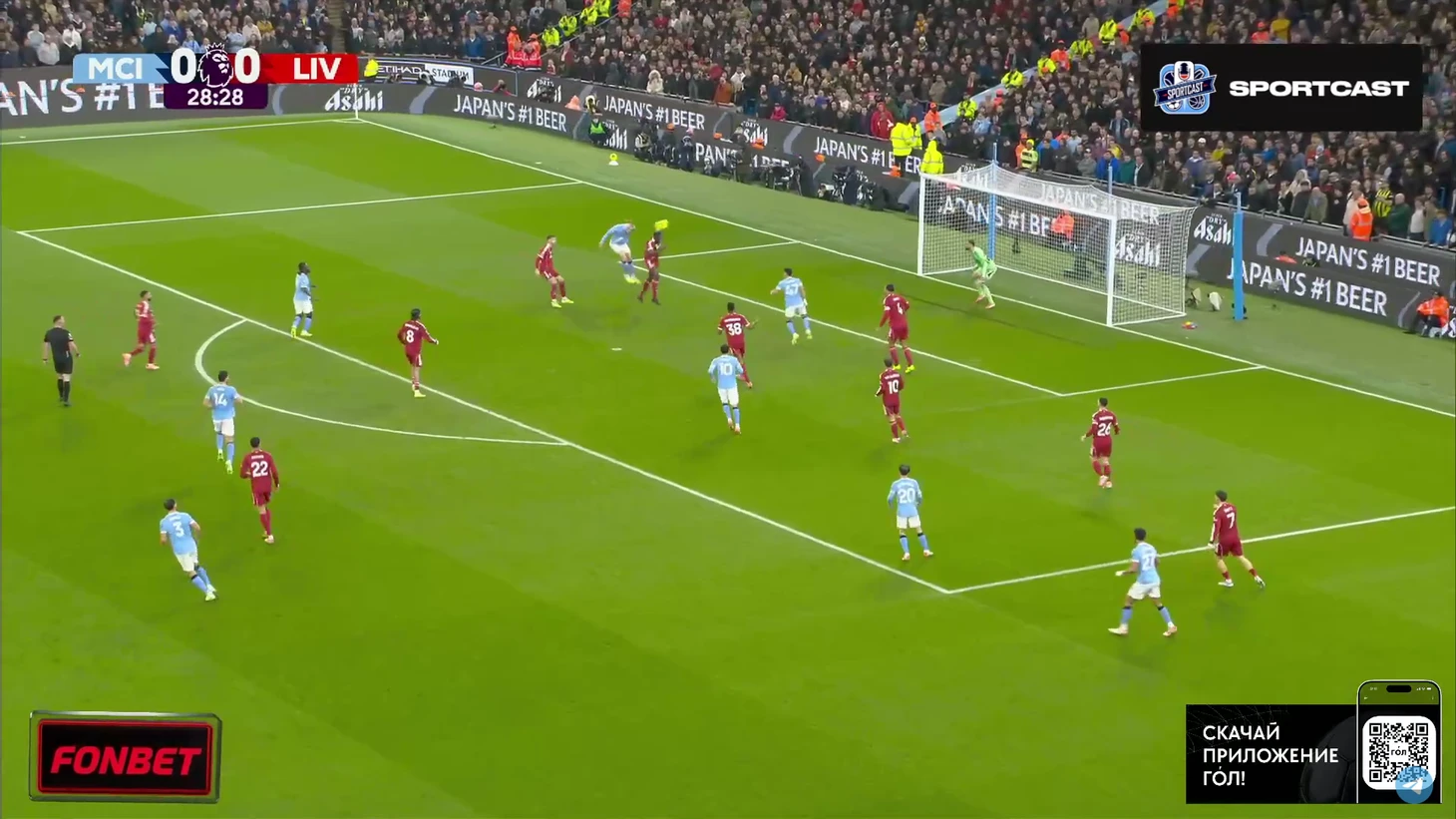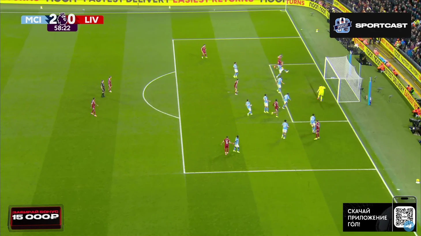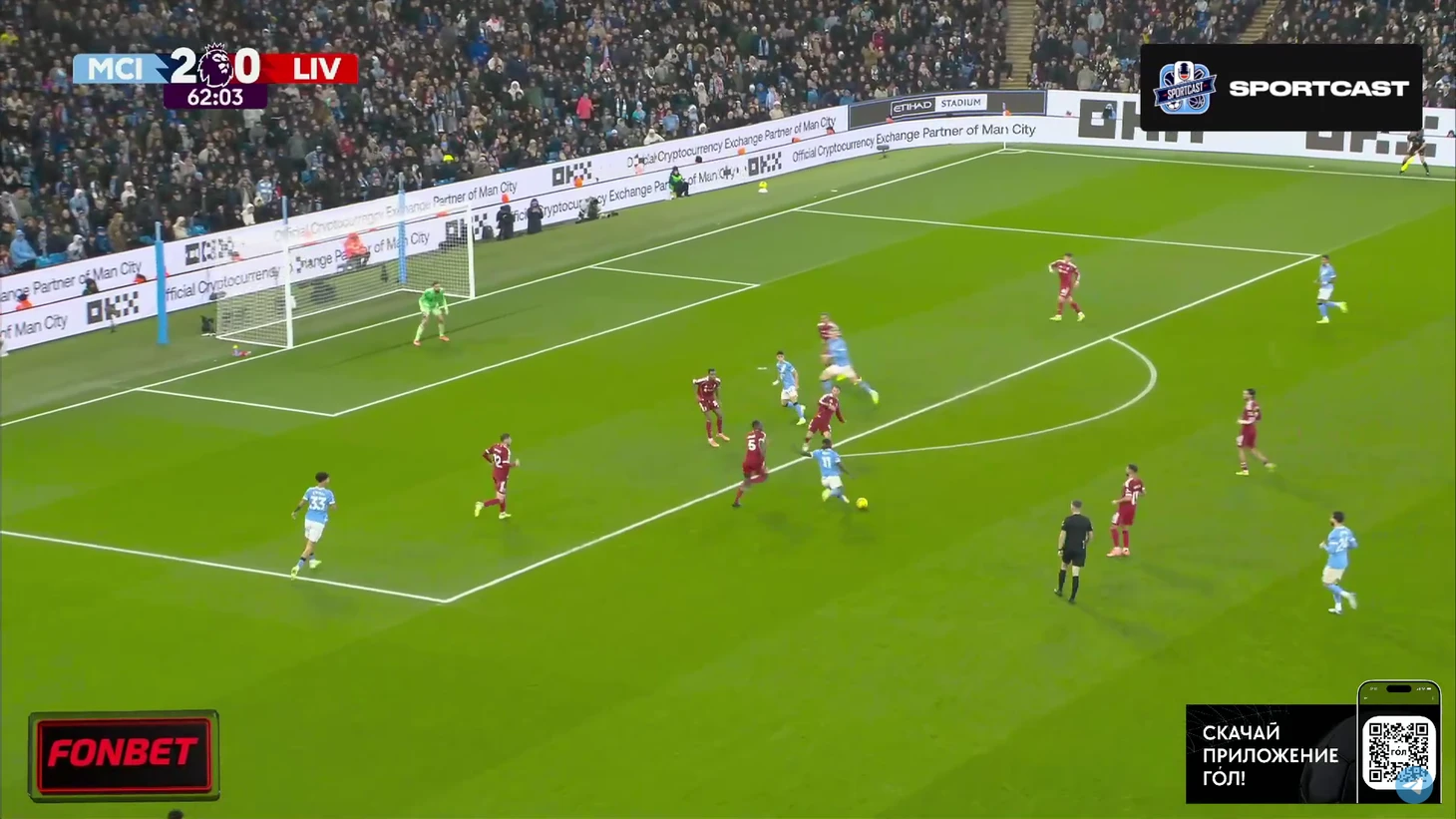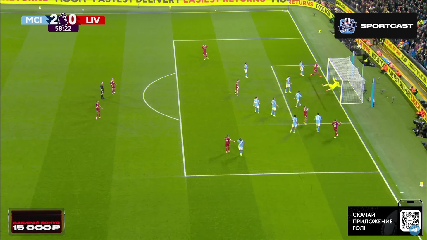 Впрочем, на настроение «горожан» это никак не повлияло. Они продолжили идти вперёд, преимущественно через фланг Доку, однако реальных угроз воротам «Ливерпуля» было немного. Выделяется момент Райана Шерки, чей удар заблокировал Вирджил Ван Дейк.