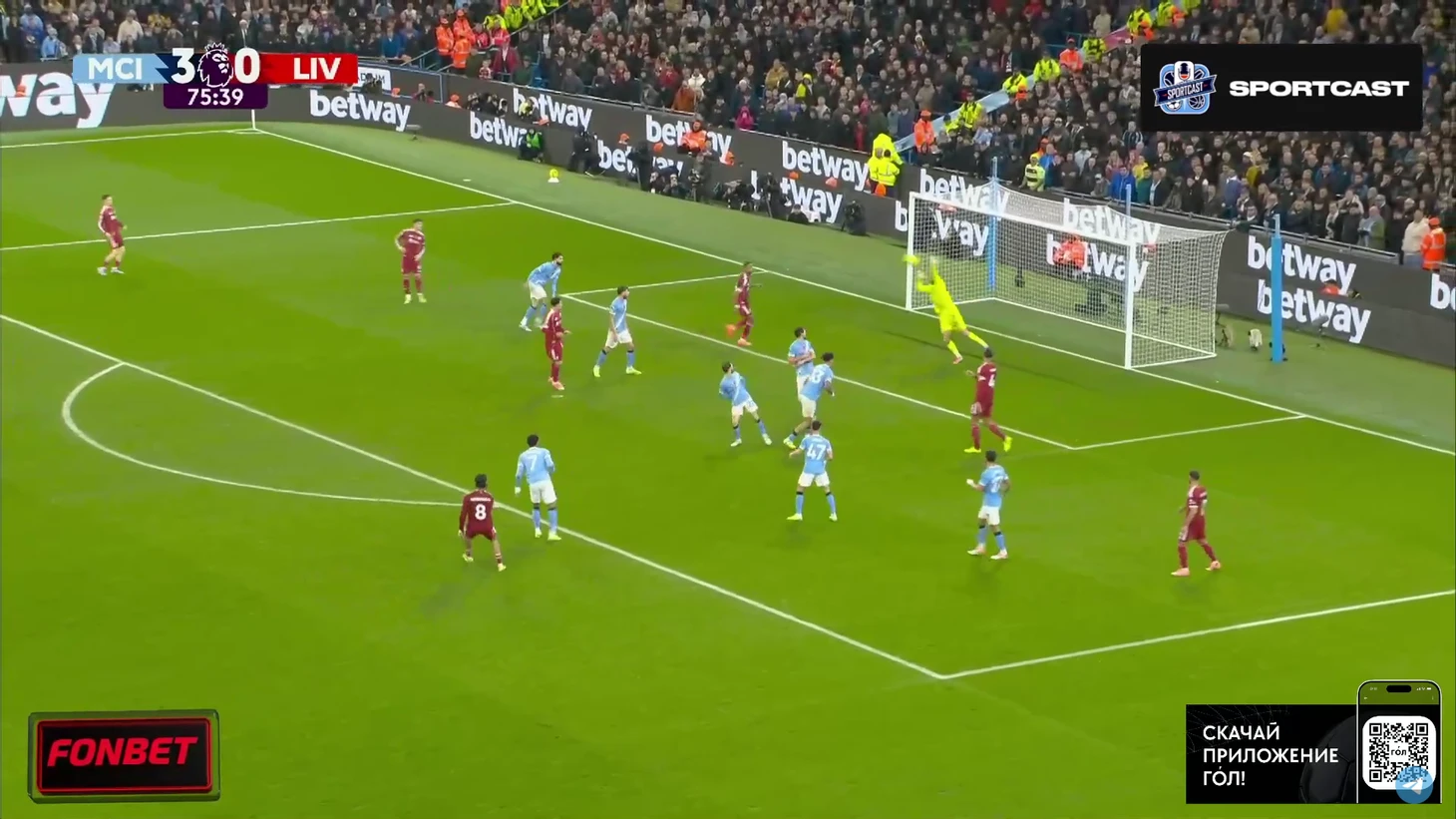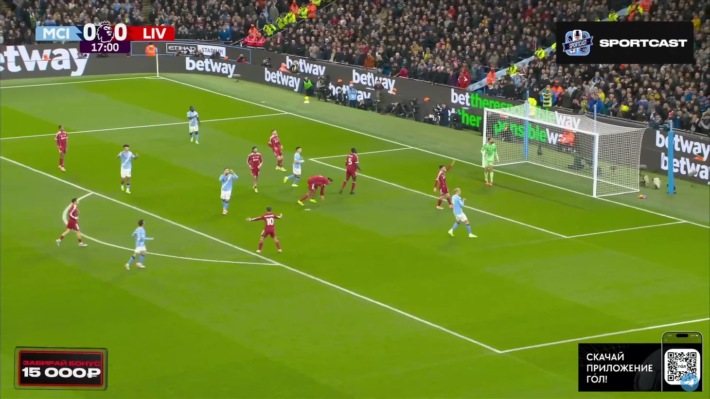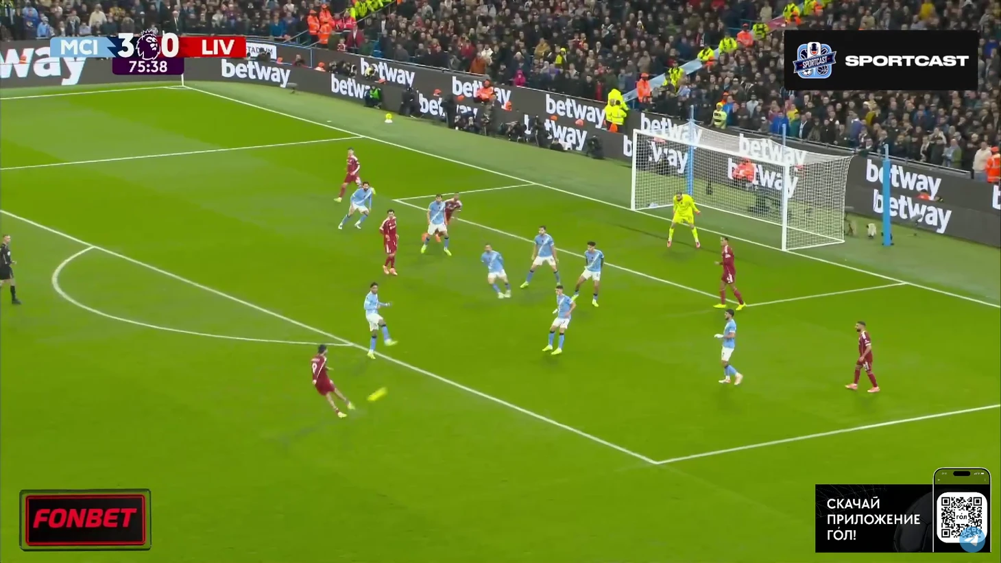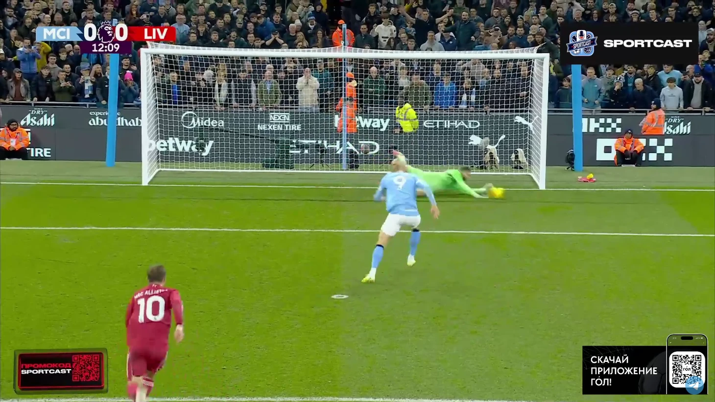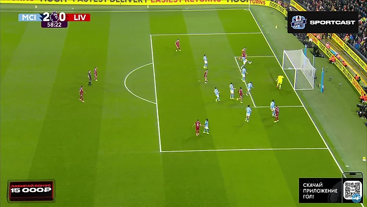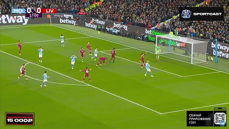А следующий опасный момент превратился в гол. И пришёл он, как ни странно, с правого фланга. Матеуш Нуньеш навесил в штрафную, Холанд без проблем выиграл верховую борьбу у Конате и отправил мяч в сетку. Мамардашвили даже не шелохнулся.