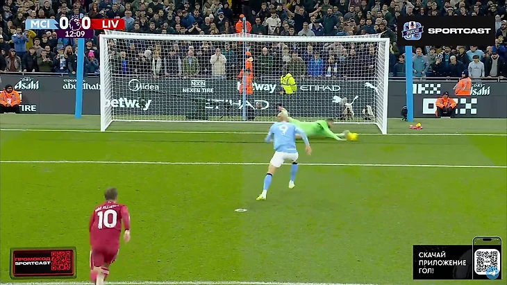 Лично мне показалось, что Доку искал контакта, но судья был иного мнения. Как бы то ни было, пенальти Эрлинг Холанд не забил. Что забавно, на графике, появившейся перед ударом, было показано, что норвежец не реализовал 2 из 5-ти последних ударов и оба они пришлись в нижний правый угол. Видимо, Георгий Мамардашвили изучил этот вопрос.