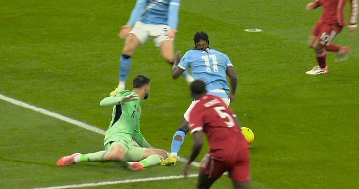 «Сити» классно поддавил в начале – и быстро заработал пенальти. Жереми Доку воспользовался ошибкой Ибраима Конате, влетел в штрафную и запнулся о колено вратаря «Ливерпуля». Арбитр Крис Кавана посмотрел повтор и указал на точку. А Георгий Мамардашвили потащил удар Эрлинга Холанда.