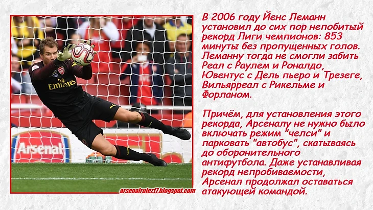 Конечно, тот непобедимый, чемпионский Арсенал вошёл в историю в первую очередь как искромётная атакующая команда с Пиресом, Юнгбергом и Бергкампом; однако в условиях отсутствия надёжной обороны и перекоса в сторону созидательно-атакующего футбола роль Леманна была особенно важной.