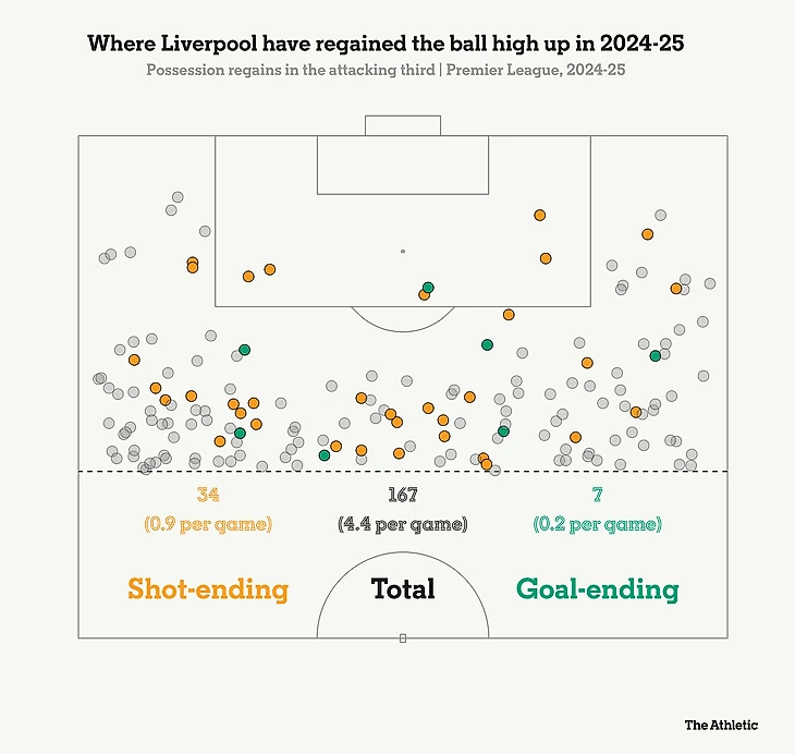 В сезоне 2024/25 они в среднем отыгрывали владение мячом 4,4 раза в атакующей трети.