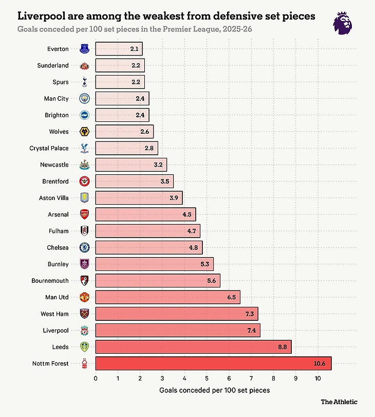 Надоело слушать о стандартных положениях? К сожалению, «Ливерпуль» продолжает уступать и здесь.