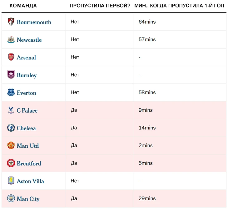 В этом сезоне, однако, все с точностью до наоборот. Поражения от «Кристал Пэлас», «Брентфорда», «Челси», «Манчестер Юнайтед» и «Манчестер Сити» произошли после того, как «Ливерпуль» пропустил первый гол.