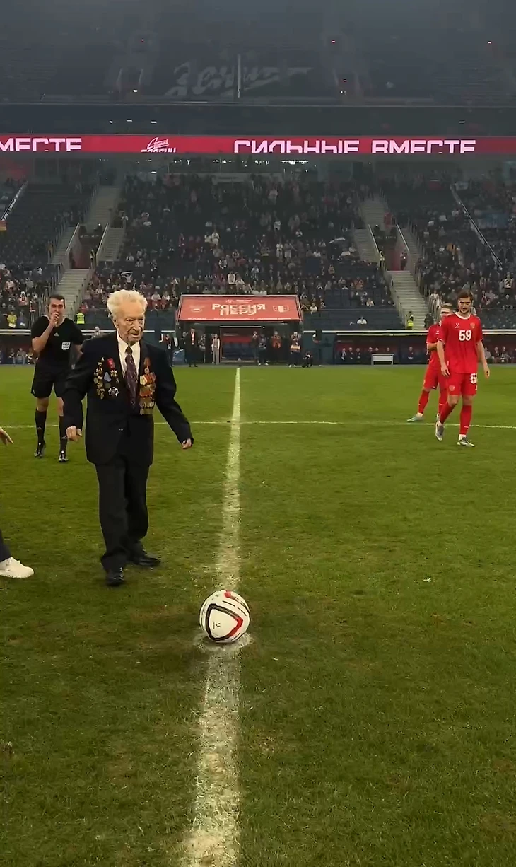 Артисты разогрели матч. Но главным героем вечера стал он. Владимир Михайлович Колосов, ветеран Великой Отечественной Войны, который в следующем году отпразднует 100-летие. Моей семье не чужда тема блокады. Низкий поклон.
