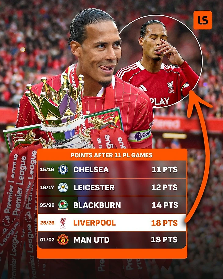 Как подсчитали эксперты LiveScore, мерсисайдцы выдали один из худших стартов действующего чемпиона в истории АПЛ.