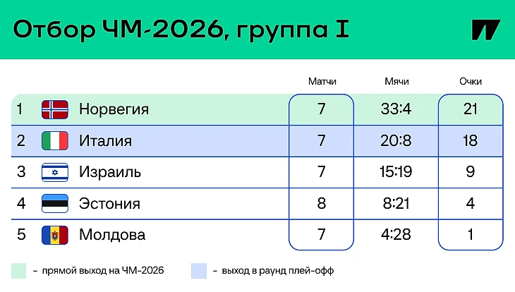 Что дальше: Италии принимать Норвегию – чтобы перевернуть расклад, надо выиграть 9:0. У Молдовы с Израилем не будет и такой интриги.