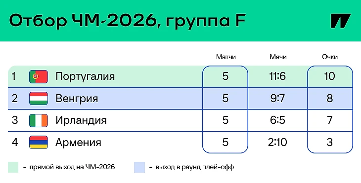 Что дальше: Венгрия примет Ирландию – и тут матч за стыки. Португалия сыграет дома с Арменией, на всякий случай надо побеждать, могли гарантировать себе место уже сейчас, но поражение усложнило расклады.