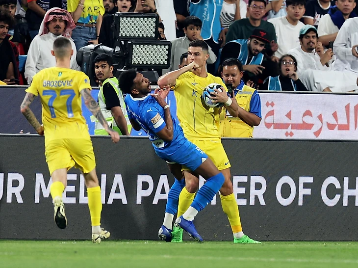 Похожий на Ирландию сценарий: сорвался на 86-й, когда в полуфинале Суперкубка Саудовской Аравии «Аль-Наср» проигрывал «Аль-Хилалю» 0:2. Защитник Али Аль-Булайхи в подкате выбил мяч в аут и попытался взять его в руки – Роналду ударил соперника локтем. Началась потасовка.