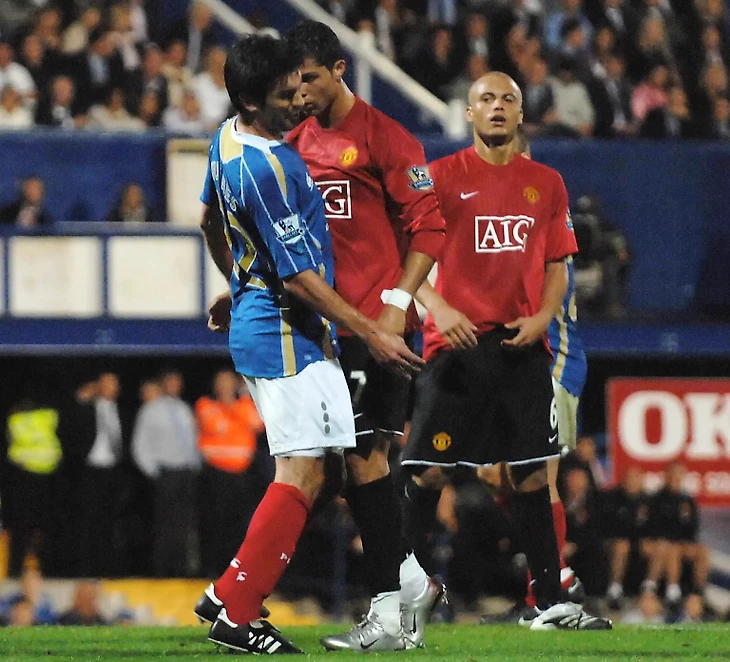 Следующая красная – и вновь от арбитра Беннетта! Сезон, закончившийся для Криша «Золотым мячом» и победой в ЛЧ, начался с удаления на стадионе «Портсмута». На 85-й минуте Роналду боднул Ричарда Хьюза (кстати, нынешнего спортивного директора «Ливерпуля») и спровоцировал драку игроков обеих команд. Арбитр Стив Беннетт показал прямую красную португальцу.