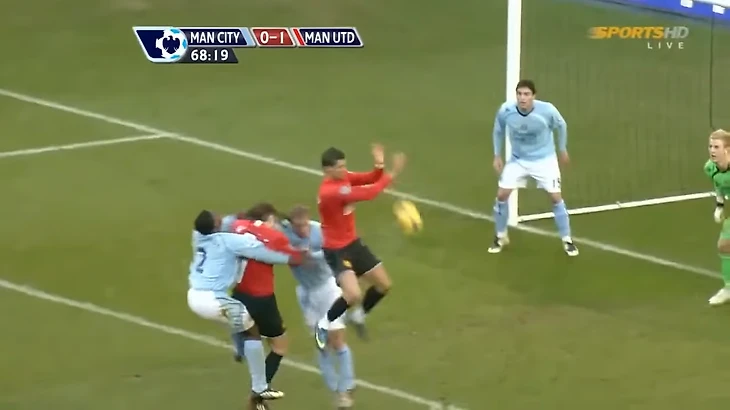 Второе удаление в манчестерском дерби. Роналду буквально за девять минут схлопотал два горчичника от Говарда Уэбба. Первый – за срыв контратаки: скосил Шона Райта-Филлипса. А потом так старался забить, что замкнул подачу двумя руками. Вторая желтая.