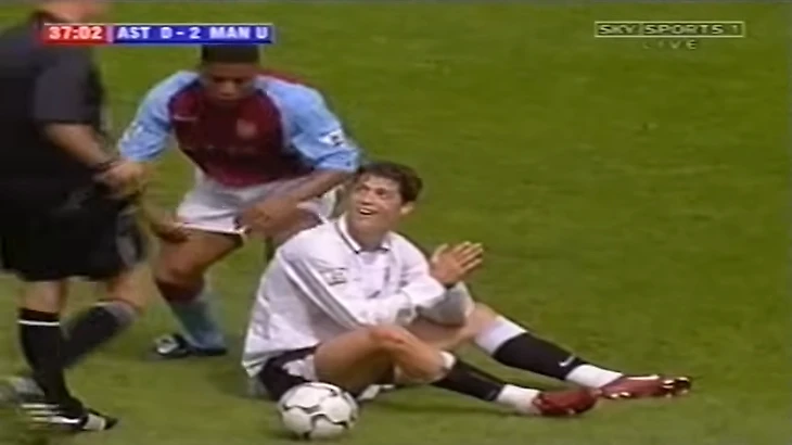 Первое удаление в карьере Роналду случилось в последнем туре дебютного сезона в Англии. Против «Астон Виллы» получилось глупо. В первом тайме Криш симулировал, попытавшись заработать штрафной – арбитр Роб Стайлз был близко и не купился. Желтая за артистизм.