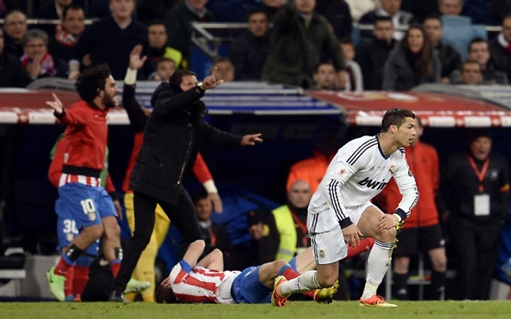 Финал Кубка Испании-2012/13 против «Атлетико» закончился для Криштиану на 115-й минуте. Португальца скосил капитан соперников Габи, а Роналду в ответ в падении попал ногой по лицу фолившему. Криша удалили, а Габи получил желтую (которая через несколько минут тоже превратилась в красную за другое нарушение).