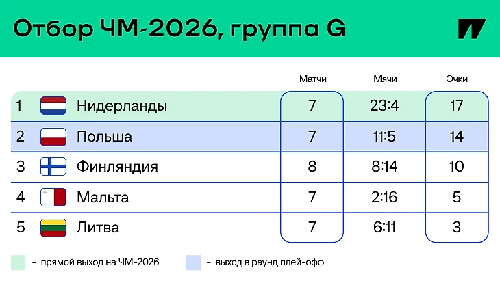Мальта поднялась с последнего места в группе – другой мотивации не было. Финляндия теперь точно мимо ЧМ – правда, и победа оставляла минимальные шансы на стыки. Польша опережала на три очка, хотя провела на две игры меньше.