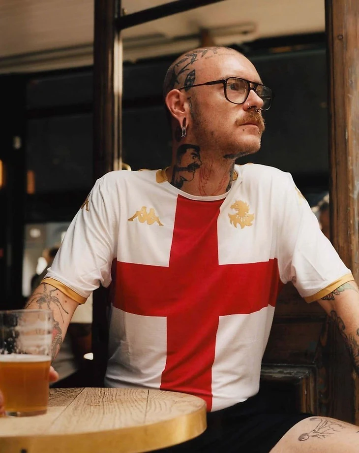 Самый громкий релиз этого сезона в итальянском футболе. Презентация, снятая в Англии, в том числе в родном для основателя «Дженоа» районе, слоган «It's coming home», взятый у болельщиков сборной «туманного альбиона» и скандал, связанный с татуировкой одного из моделей. Крест Святого Георгия — герб города Генуя. По одной из легенд, право на использование этого символа как флага на судах жители Великобритании приобрели за небольшую дань. Граждане именно этой страны были создателями сначала крикетной, а после уже и футбольной команд. Сами итальянцы некоторое время даже не могли в них выступать. Новый комплект — про эту историческую связь.