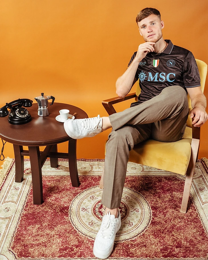 «Кофейная» джерси. На протяжении более чем двух столетий неаполитанцы с гордостью хранят искусство приготовления этого напитка, начиная с традиционного куччелла, культового «неаполитанского кофейника», и заканчивая его более современными интерпретациями. Еще одной классической деталья является воротник в стиле поло.
