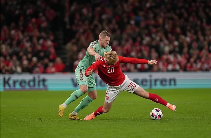 После двух пропущенных голов команда Брайана Ригера (прим. - имеется в виду тренер сборной Дании Каспер Юльман) проснулась и поняла, что победа уходит. Спасти очко (причем во всех смыслах) было необходимо! Датчане завелись и начали атаковать, атаковать и атаковать. Но тут must-have — Федор Лапоу! Такого тащера для сборной надо поискать! Он долго спасал команду (да и в первом тайме несколько раз выручал из точнейших позиций). «Калитка» была на максимальном замке, но, как говорится, если долго подбирать ключ, рано или поздно подберешь. И подобрали: на 78-й минуте «манкунианец» Хёйбьерг отлично пробежал по флангу и сделал прострел (буквально как по учебнику), который прошел через двух защитников и оказался точно на ногу Исаксену. Тот заложил «неберущийся» мяч — такой удар ни один вратарь бы не взял!