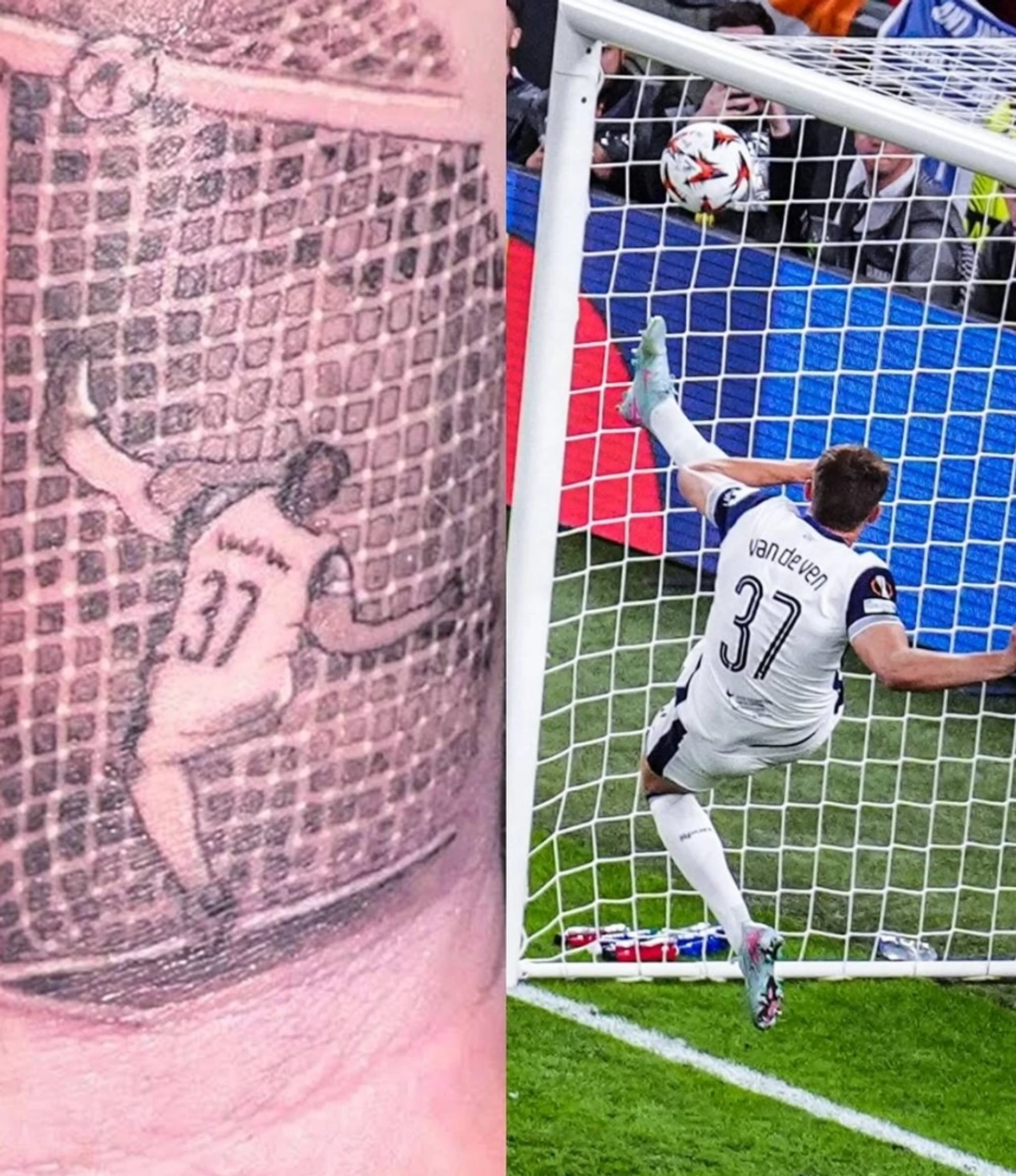 Фанат «Тоттенхэма» набил на руке татуировку с сейвом защитника Микки ван де Вена в финале Лиги Европы против «Манчестер Юнайтед».