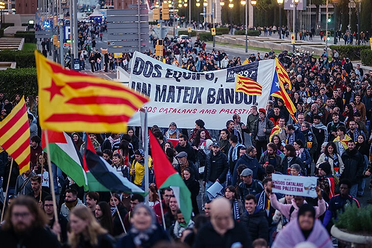 На трибунах были баннеры «За свободу народов – от Каталонских стран до Палестины» и «Каталонские страны вместе с Палестиной».