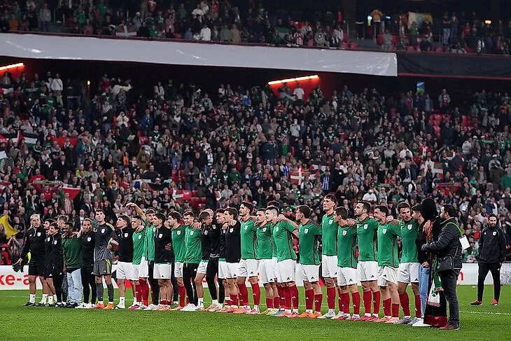 Перед матчем по Бильбао прошли два марша солидарности с палестинцами. По данным полиции, в них участвовали около 20 тысяч человек – среди них фанаты «Атлетика», «Сосьедада», «Алавеса» и «Осасуны». Количество двойных шарфов «Палестина/Эускади» зашкаливало.