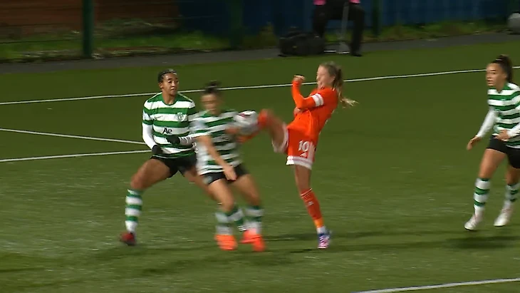 Португальский клуб был в гостях у суровых шотландских девушек. Первые моменты у «Спортинга» начали наклёвываться уже в районе 10-й минуты - пару навесов в штрафную плюс удар, перелетевший ворота. «Глазго» ответил неплохим выстрелом Натальи Врубель. Полька же и открыла счёт в матче на 20-й минуте, хотя лично у меня возникают сомнения по поводу положения ноги в данном эпизоде: