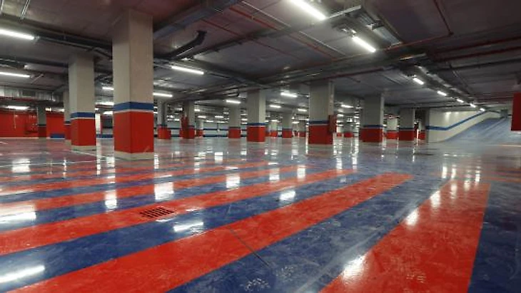 Главная парковка рассчитана примерно на три тысячи мест. Готова также парковка для игроков и вип-персон на 200 мест, многие из которых оборудованы зарядными станциями для электромобилей.