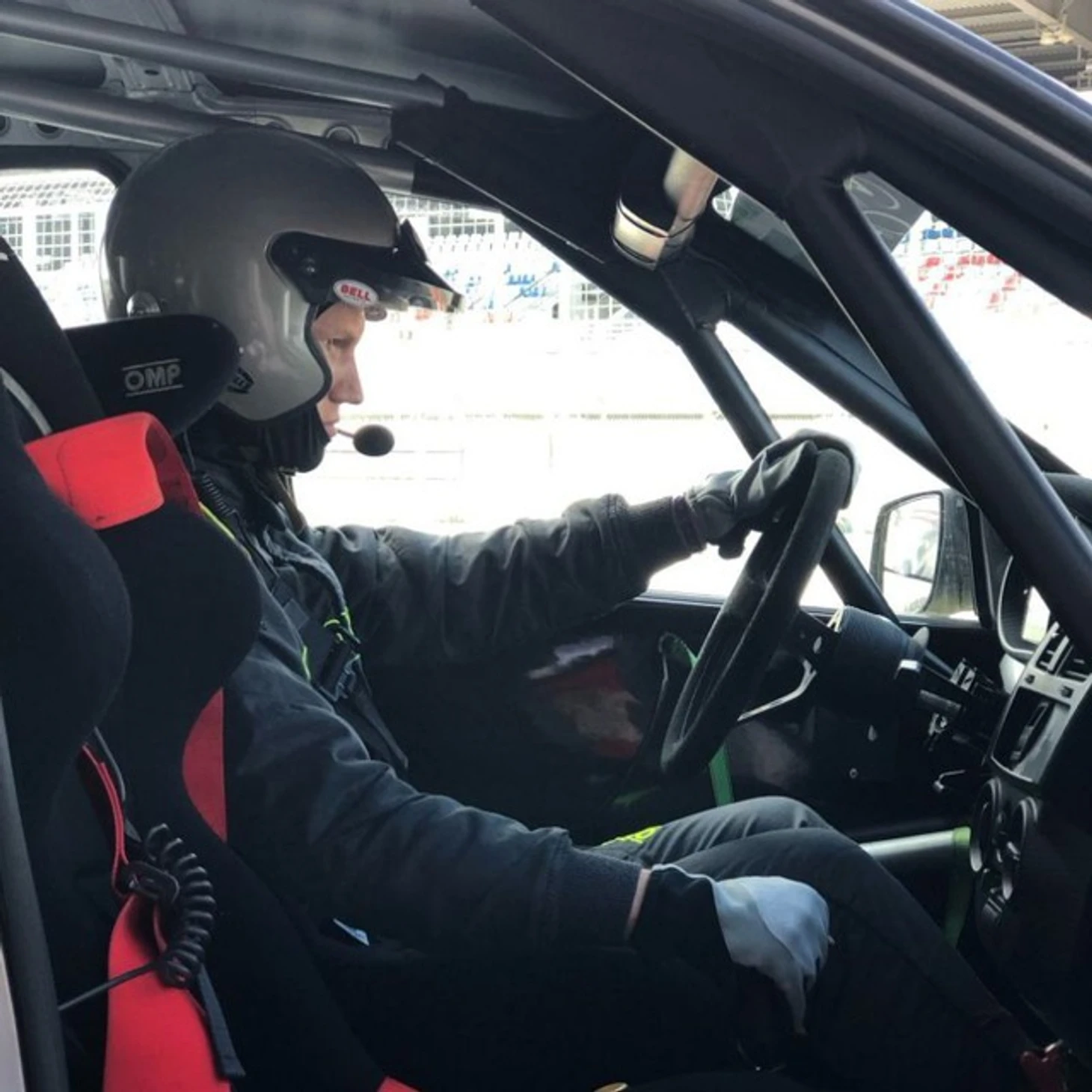 Я надеваю гоночный шлем, он без визора;
