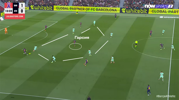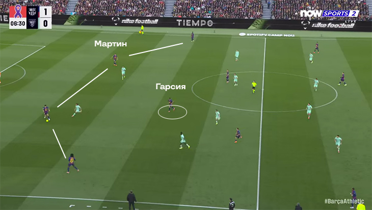 Ответ Флика на потерю ключевых полузащитников – опорник Эрик Гарсия. У него уже есть опыт игры в центре поля (как в «Барсе», так и в «Жироне»), но все-таки центральный защитник всегда оставался скорее экстренным вариантом. В матче с «Атлетиком» Гарсия был ключевым игроком во всех стадиях: обычно располагался чуть правее, в пару к нему спускались Дани Ольмо или Фермин Лопес.