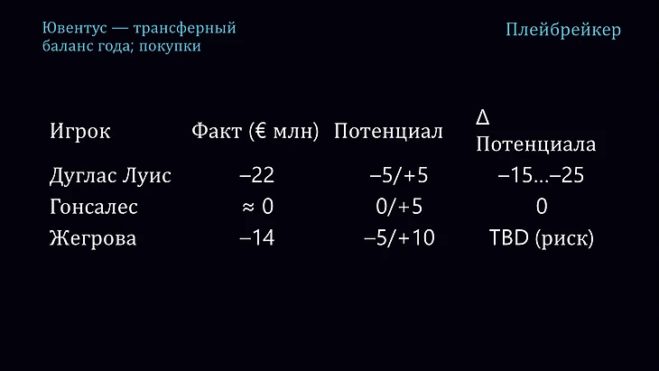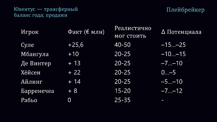 то же самое, например, с Суле, Мбангулой, Де Винтером, Айлингом, Барренечеа, Хёсеном: всё это даёт десятки миллионов чистой прибыли в отчётах.