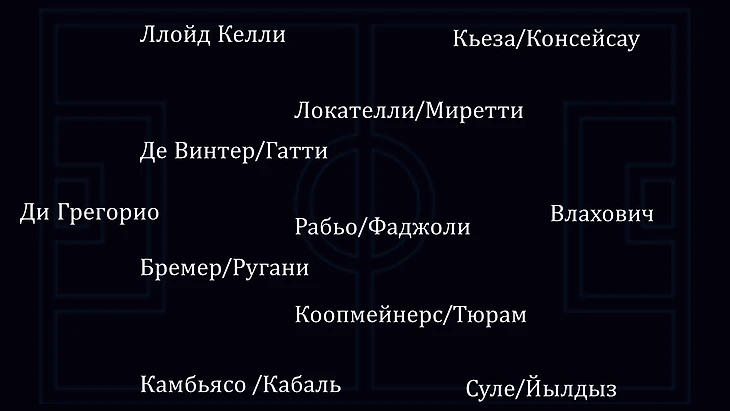 · по стилю - сочетает сильное владение в центре (Локателли-Кооп–Рабьо) и ударные переходы (Кьеза, Мбангула, Йылдыз);