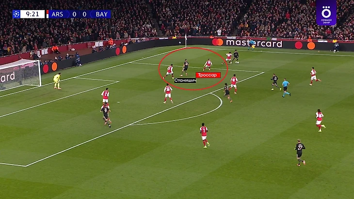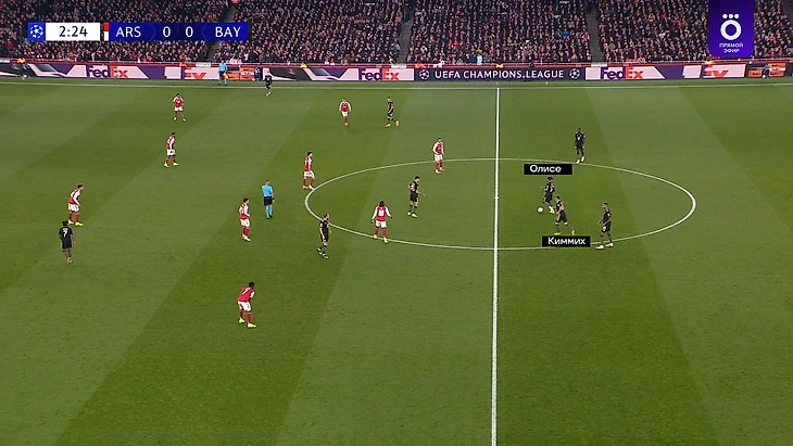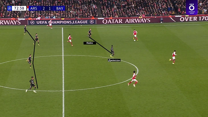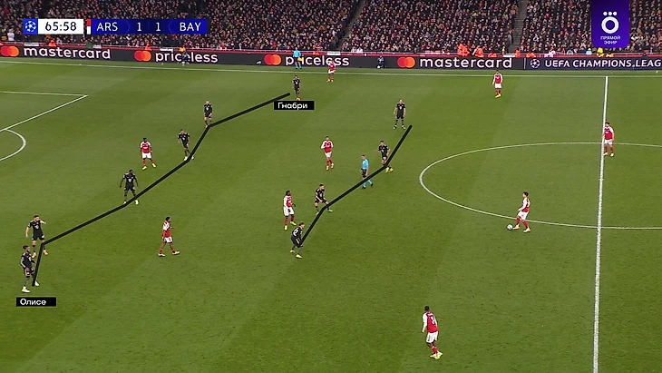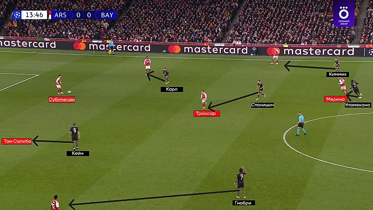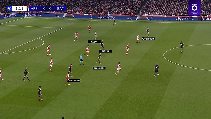 «Арсенал» отвечал плотным средним блоком и персональными ориентировками вингеров, которые не давали «мюнхенцам» использовать фирменные забегания фуллбеков.