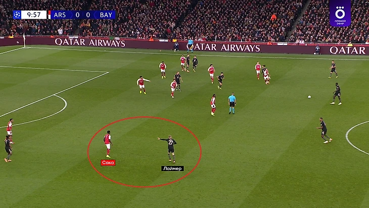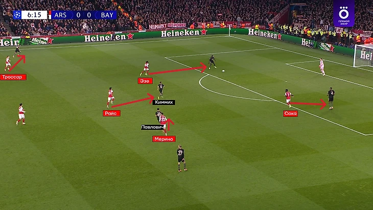 Основным оружием Артеты стал прессинг. Агрессивнейшая персональная формация «Арсенала» выматывала «Баварию» и не давала и шанса на продвижение мяча через короткий пас.
