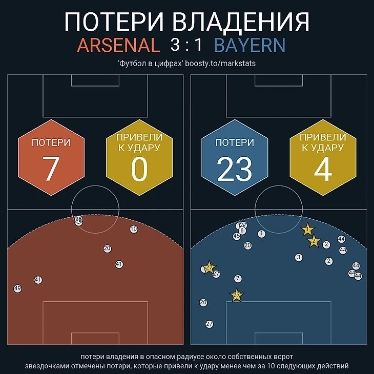 Но вчера не дополнительный игрок не понадобился. Несмотря на всю визуальную монструозность, давление «Мюнхена» почти не приводило к пожарам от «канониров», о чем говорит и статистика.
