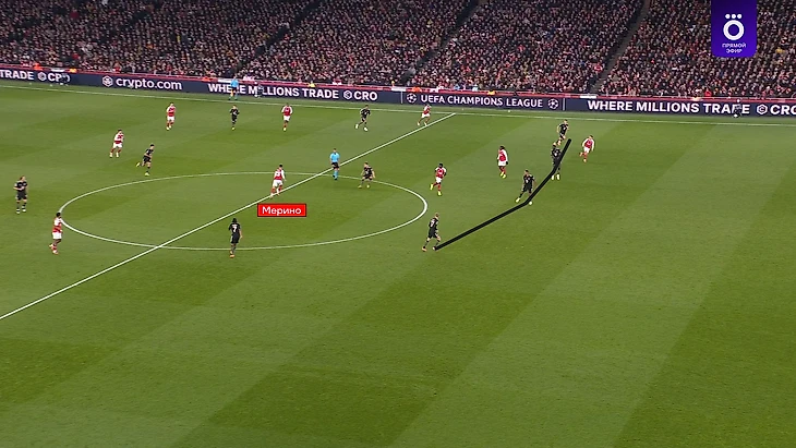 Чтобы противостоять этому давлению, Артета опускал Субименди в первую линию розыгрыша и освобождал его от опеки. Эту конструкцию Микель использует достаточно часто, а в последних матчах он пробовал опускать в эту зону второго игрока — Деклана Райса.