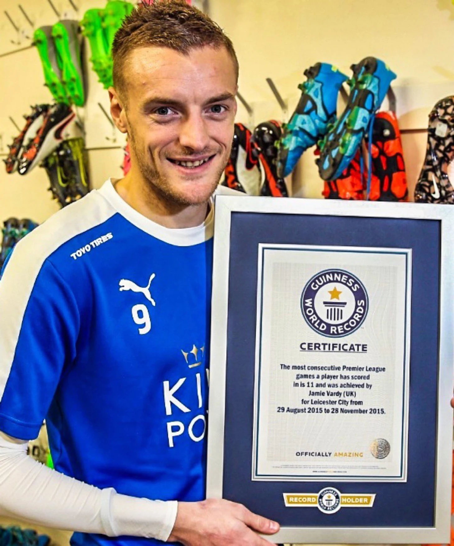 Речь про число матчей подряд, в которых форвард забивал хотя бы один мяч – одиннадцать. Эта серия началась 29 августа в игре против «Борнмута», а завершилась 28 ноября в матче с «Манчестер Юнайтед». За одиннадцать игр Варди забил тринадцать мячей, а побил достижение, которое было у Руда ван Нистелроя – десять.