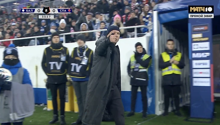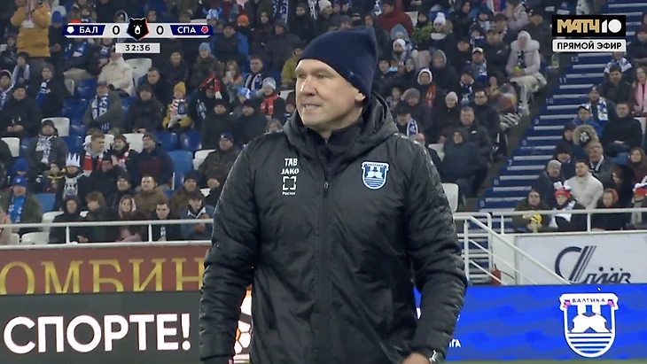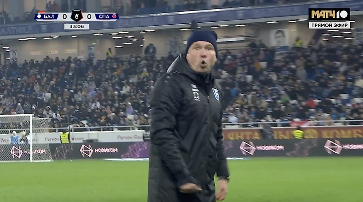 Сначала тренер «Балтики» получил желтую – за саркастичные аплодисменты судье после желтой карточки Владиславу Саусю, он сбил Маркиньоса. Про аплодисменты – формулировка из протокола.