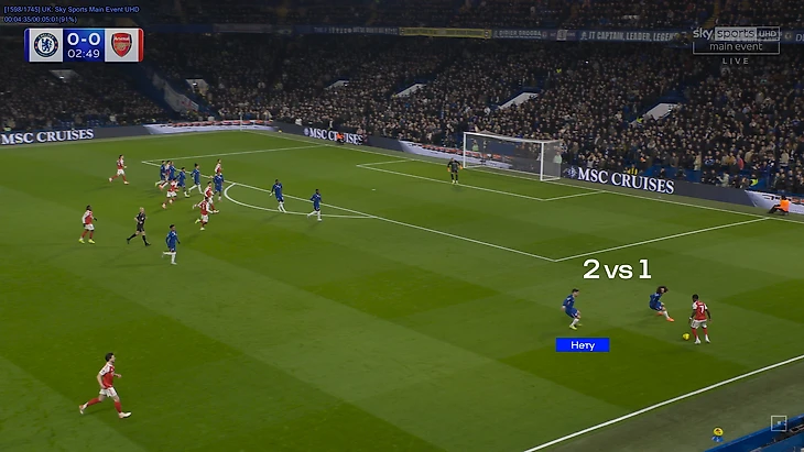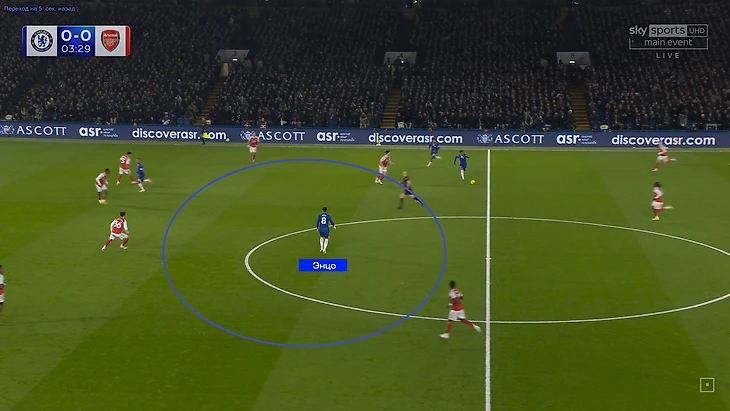 Еще одно значимое изменение у «синих» — роль Энцо Фернандеса. Вместо того, чтобы выпускать дополнительного игрока в центр поля, Мареска просто опустил Энцо и передал ему обязанности Кайседо. Фернандес действовал персонально по Эзе и часто становился пятым защитником в линии.